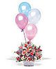 Alstroemeria, carnations, chrysanthemums, and roses are delivered in a charming wicker basket with attached pastel colored balloons.A festive gift perfect for any occasion! -