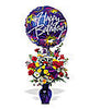 This explosion of colorful flowers, along with a foil “Happy Birthday” balloon, adds just the right spark to any birthday celebration! -