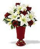 It’s Valentine’s Day! Tell her you love her – send this bouquet of perfect red roses and white Asiatic lilies. She’ll treasure the understated red ceramic vase with sweet ceramic roses around the stem – pretty enough to display on its own. An elegant bouquet befitting an elegant lady.
