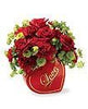 Send her your heart, bearing a message of “Love” that’s elegantly written in gold script! This charming gift of red and green flowers arrives in a Valentine’s Day classic – a heart-shaped ceramic vase. Just perfect for that special someone! -